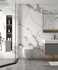 This panel features an exquisite bronze Carrara marble-like style with a super matt finish and brings timeless elegance of marble to any space. The warm bronze tones and delicate veining create a sophisticated and inviting atmosphere, perfect for classic and contemporary settings.